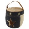 Cale porte en coton décoré d'oeillets et empiècements de peau de vache. Poignée en cuir.